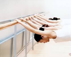 You stand with your left side toward the barre. You place your two hands in the air while you hold your hands firmly together. While holding them you will move the upper part of your body in a 45 degree circular motion. You will then do the same thing at a 90 degree circular motion and lastly, you will complete the circular motion through a "Port De Bra" which simply means through the body with your left hand on the bar.